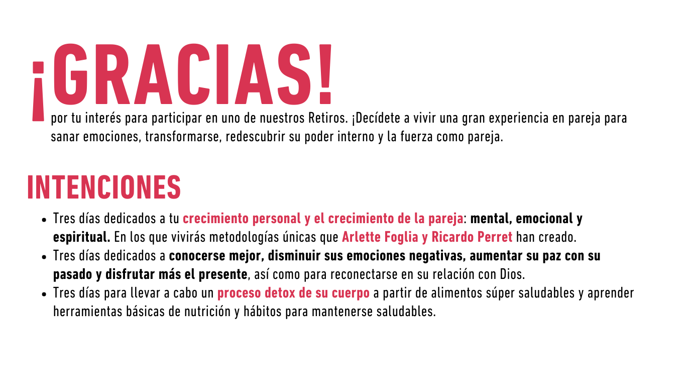 GRACIAS por tu interés para participar en uno de nuestros Retiros…